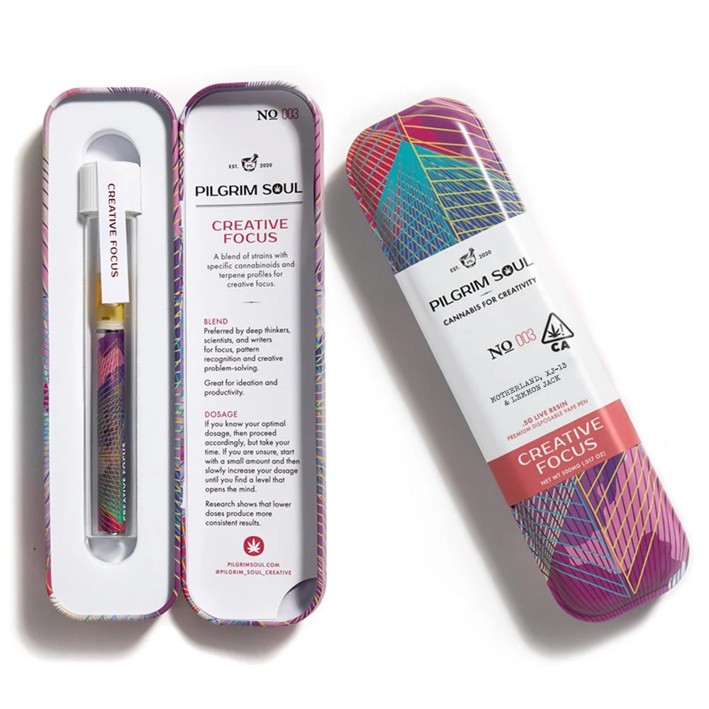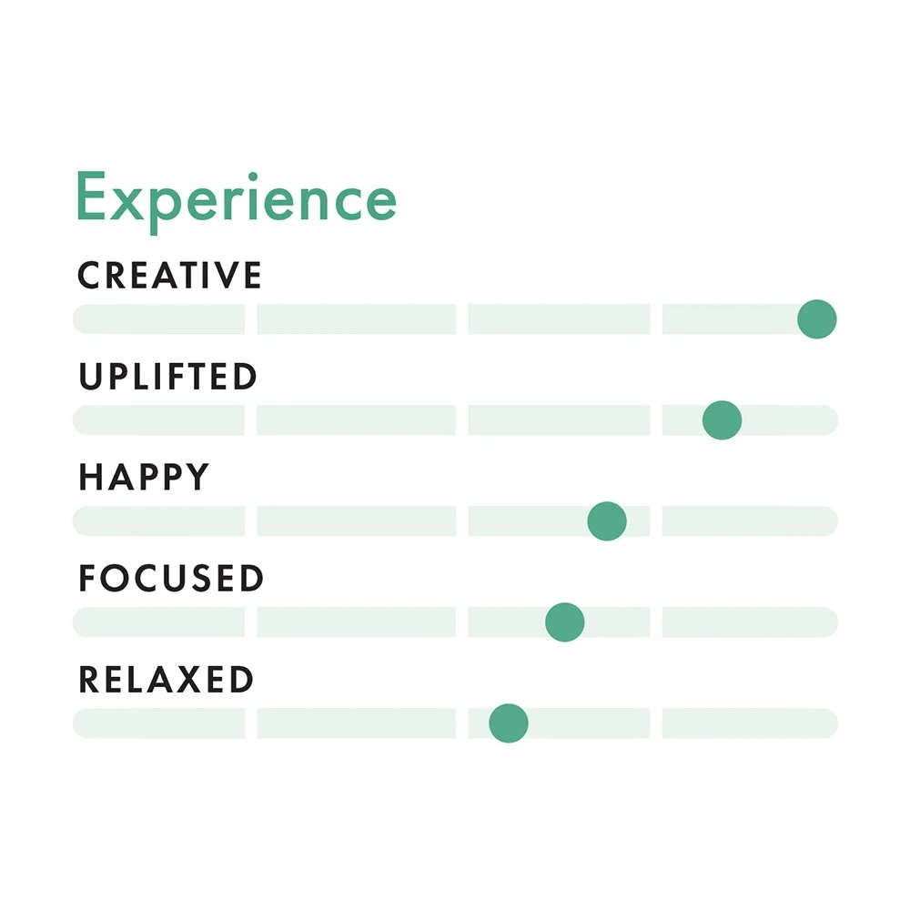 Together with the scientists at AbstraxLabs, we have analyzed hundreds of cannabis strains that index high for creativity, along with secondary and tertiary states of mind. After identifying the common cannabinoid and terpene profiles of each cannabis strain, we’ve built a matrix of strains that we blend together for specific creative impact. This ongoing research is supported by focus groups and feedback from iconic creative leaders.